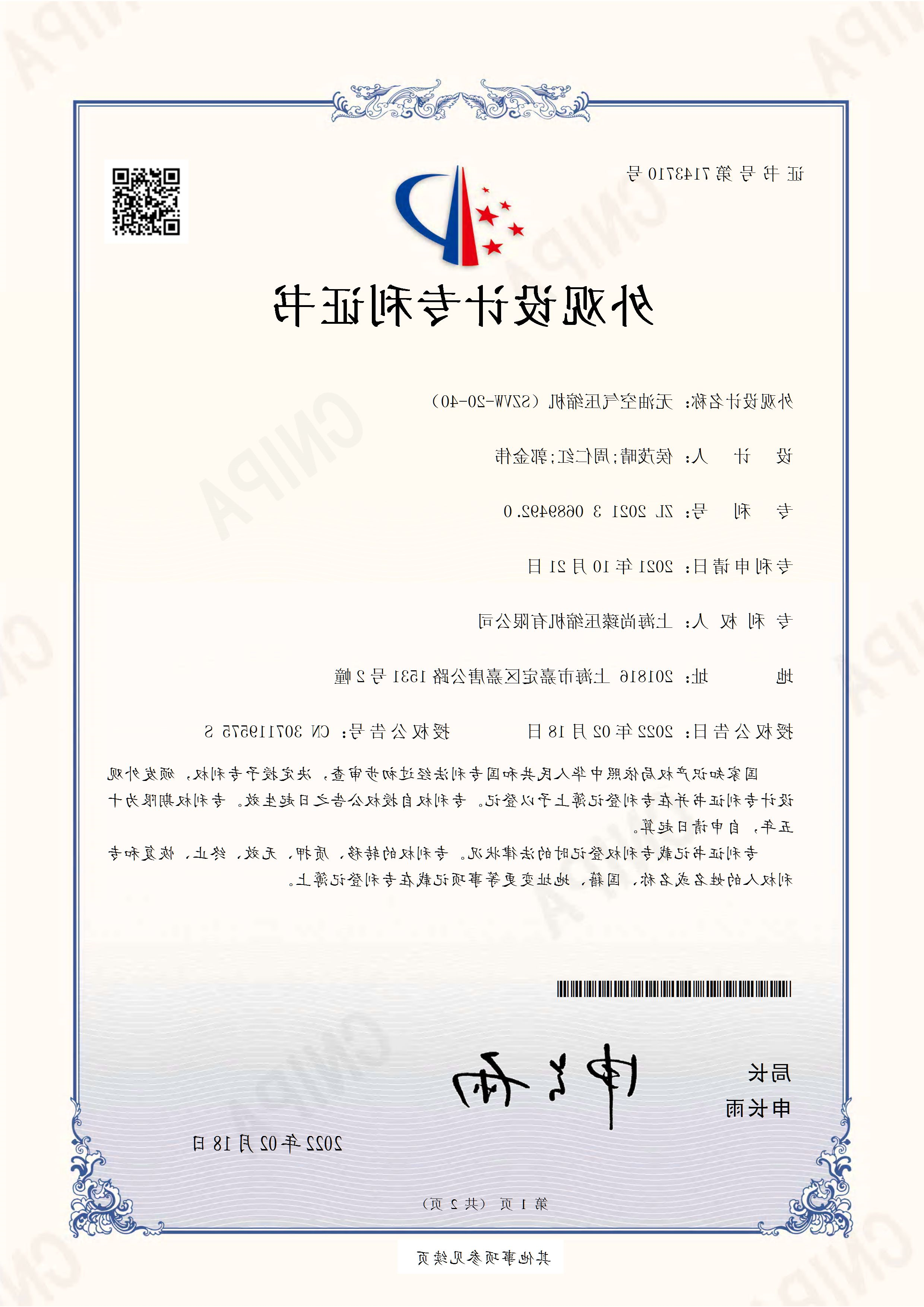 公司“以人品打造精品,用精品服务社会”为理念,拥有现代化的精密加工及检测设备,引进欧洲设计与技术,并且自主研发了多项专利技术(专利号:ZL201820681829.6,ZL201820679072.7,ZL201830205398.1,ZL201810432900.1,ZL202122535024.5,ZL202122543035.8……)。全力打造“高效、节能、环保、持久耐用”的压缩机。